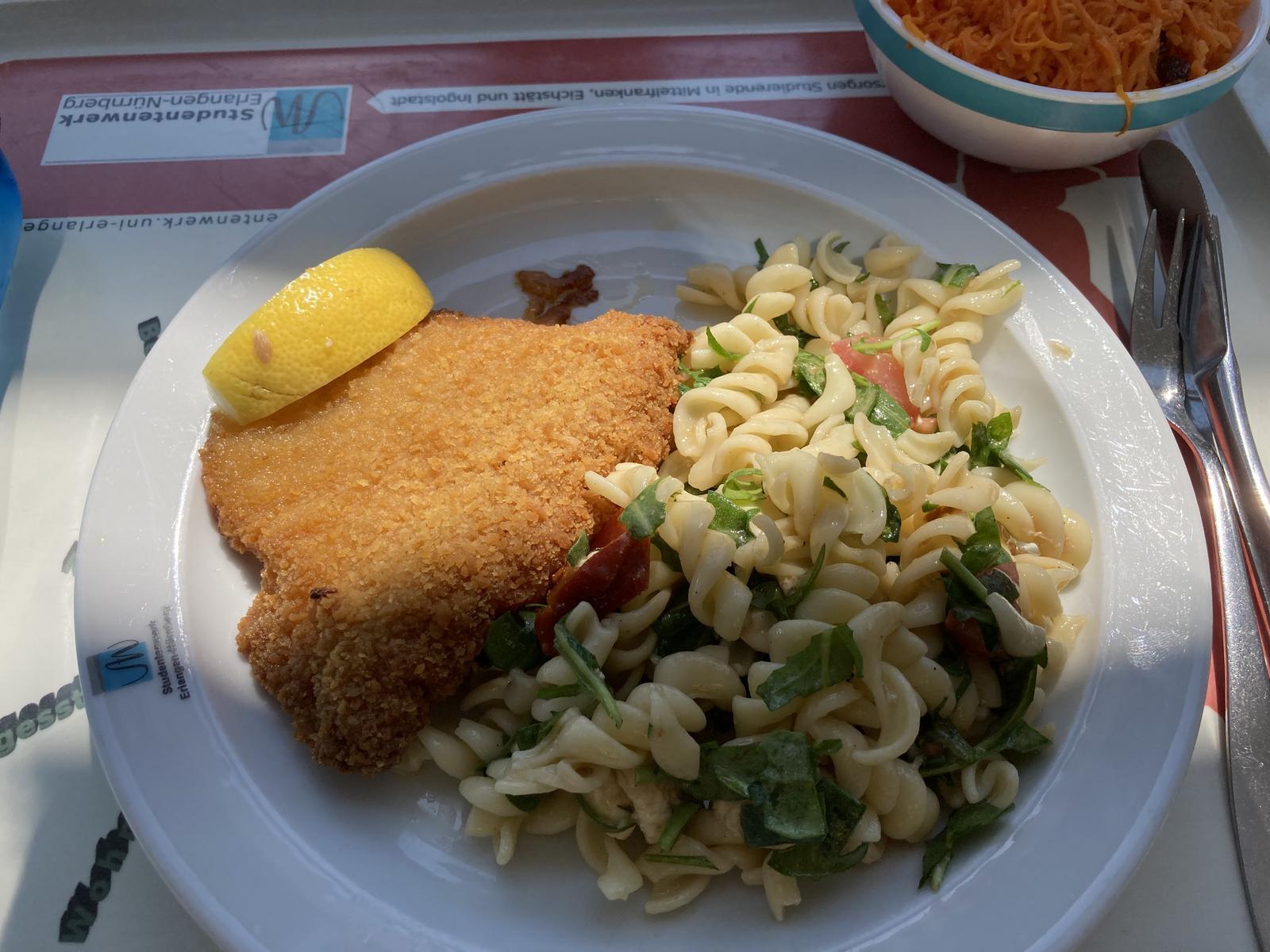 (1)| Fisch in Panade ganz lecker, aber richtig geil war der Nudelsalat! Mehr davon!!!!!! | |