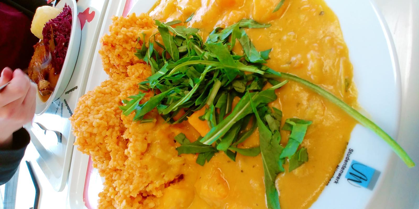 | Statt den vom Speiseplan versprochenen Kartoffelwedges gabs kalte Pommes, und zwar alternativlos. | |