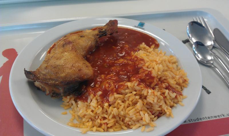 | Die Spaetzle waren gut, die Sosse sehr lecker. Die Haehnchnkeule auch sehr gut. Sie war nicht zu trocken und die Haut war sogar fast etwas knusprig ;) Es war auch reichlich! Fuer ein Mensaessen: 4,5/5 | |