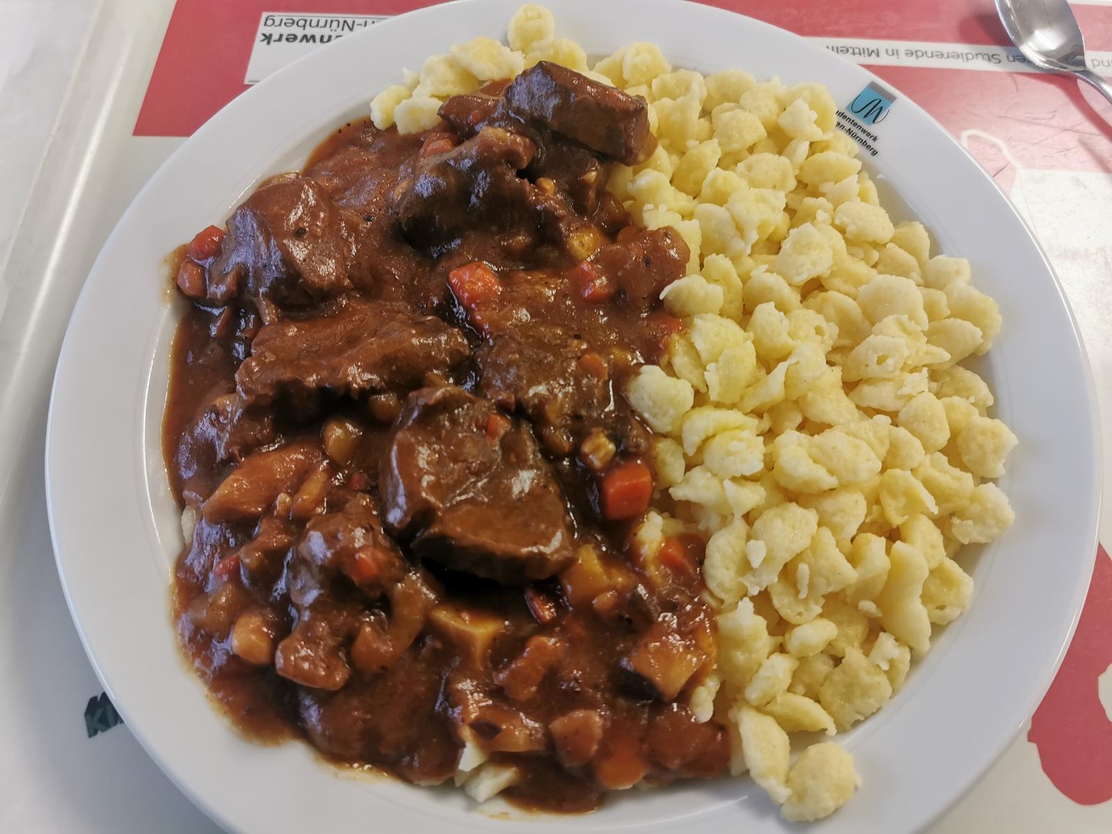 | War gut und reichlich. Die Pilze in der Soße waren sogar frisch. Allerdings war Hirschbraten angekündigt und da hätte ich mich mehr darauf gefreut. 4/5 | |