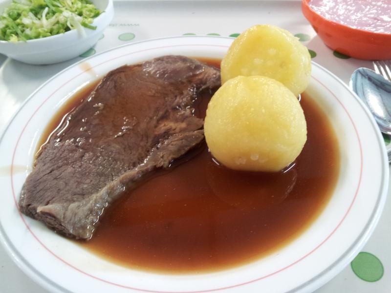 | Beilage heute war Kloß. Das Fleisch war teilweise noch etwas hart. Der Kloß war gut. Für Mensaverhältnisse echt irgendwo zwischen 4 und 5 aus 5 anzusiedeln | |