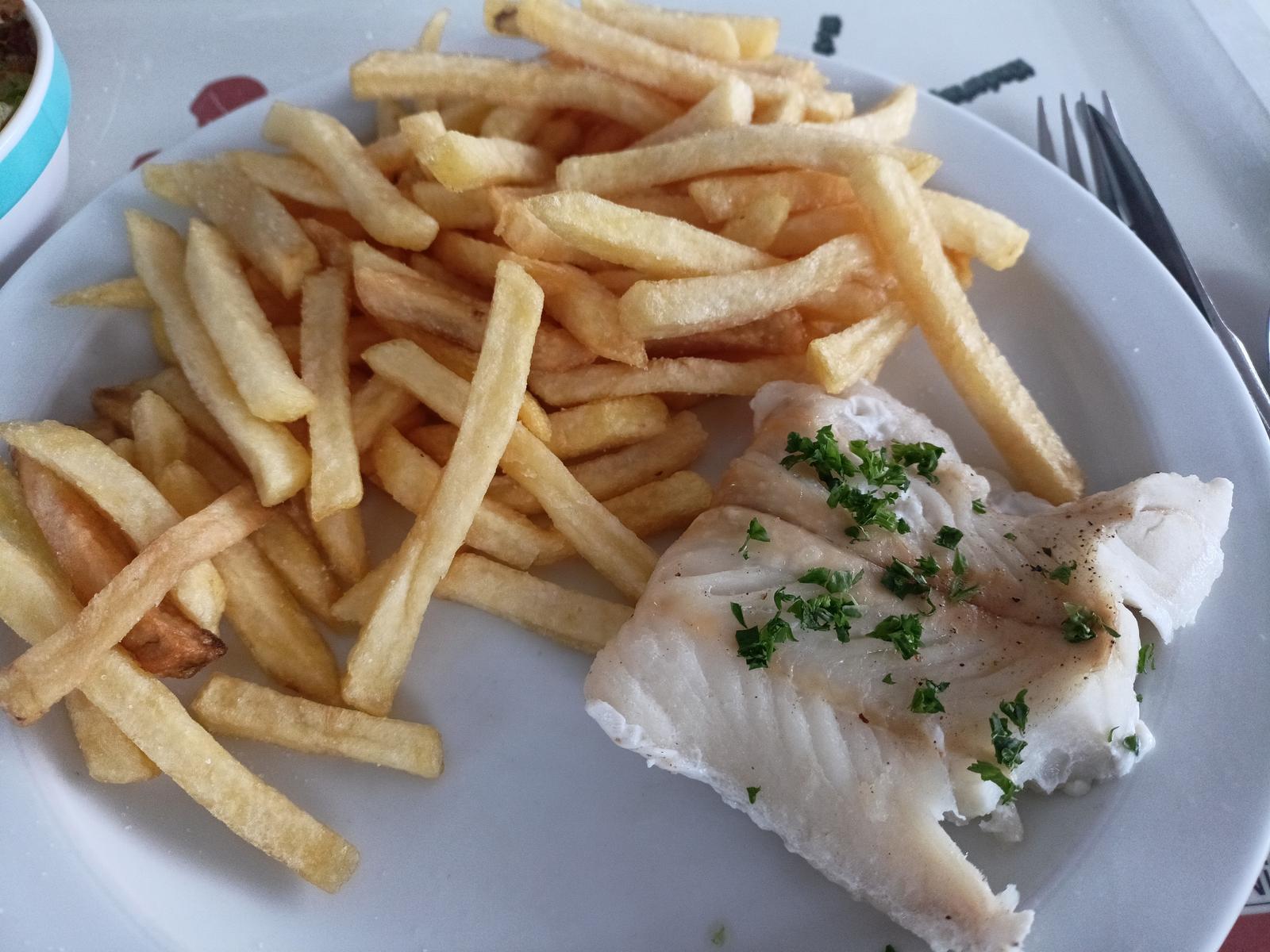| Mit Pommes eigentlich ganz lecker - allerdings war die Soße ganz besonders schleimig heute. | |