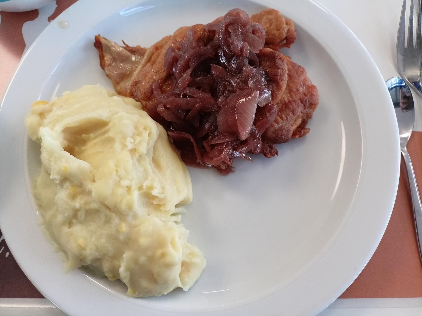 | Gabs diesmal mit Kartoffeln. Für mich eines der besten Geschnetzelten der Mensa. Natürlich kann man keine medium Filetspitzen erwarten, aber es hatte gute Säure und die Pilze waren frisch. Hat 4/5 Sternen verdient. Die Portion war sogar so reichlich, dass ich es nicht aufessen konnte, obwohl es gut war. | |