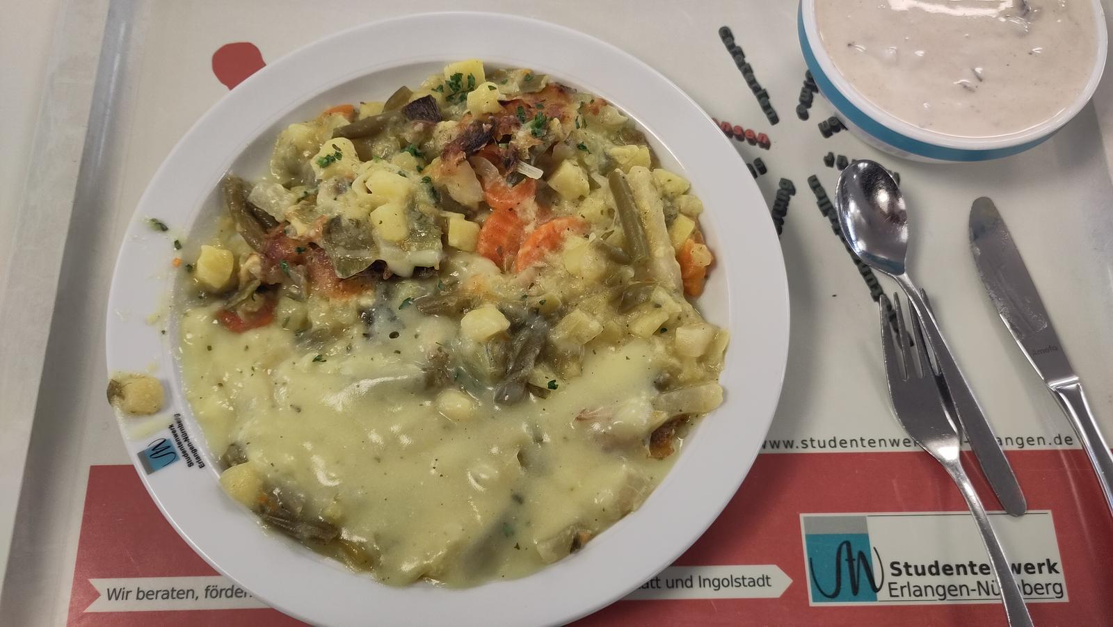 | Uhhhhhh, heute wird es erotisch, ich sage nur Sex auf Kraut. Leider hat die Mensa die Stimmung nicht mitgetragen und die Ausgabe nicht mit Rotlicht beleuchtet. Auf der Haben-Seite steht jedoch, dass das Gericht solide und lecker war ... man könnte auch sagen, ich habe sie gerne vernascht. | |