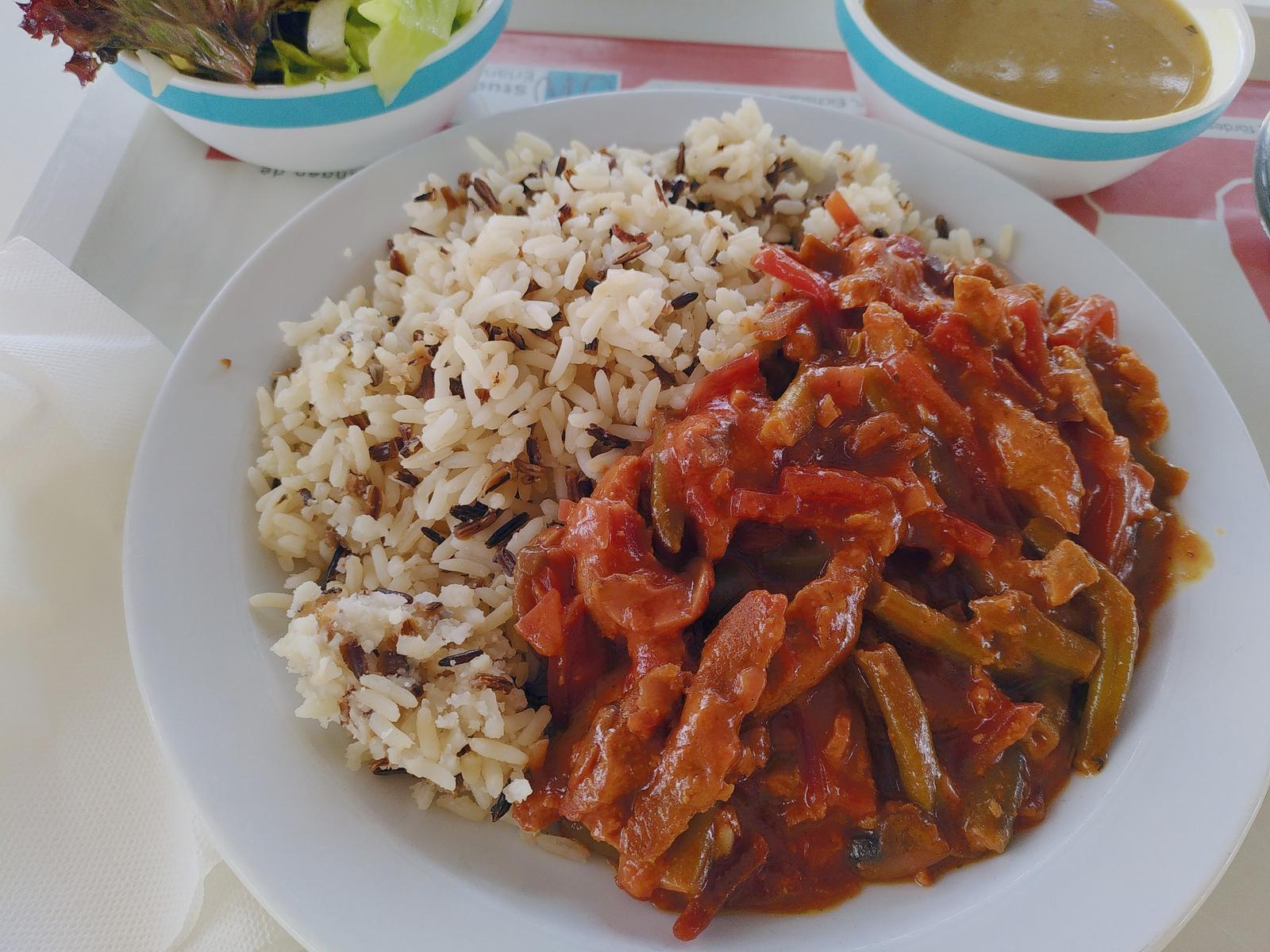 | Geschmacklich eine der eher überzeugenden Kompositionen der Mensa, allerdings passte das Soßen/Reisratio nicht und auch die Berge an Sojageschnetzelten waren nicht zu bändigen 3,5/5 | |