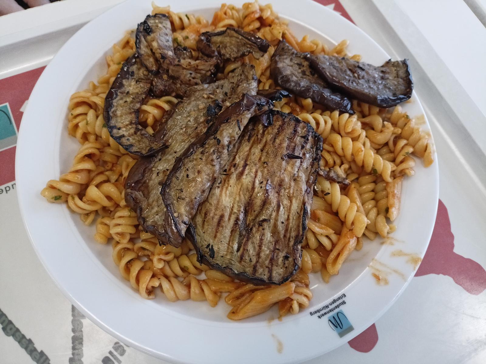 | Sieht echt nicht schön aus, aber schmeckt richtig geil. Saftig, locker, würzig - hier passt einfach alles. Die Sauce ist zwar der typische Mensa-Schlonz, aber mit etwas Salz durchaus passend. Würde wieder | |