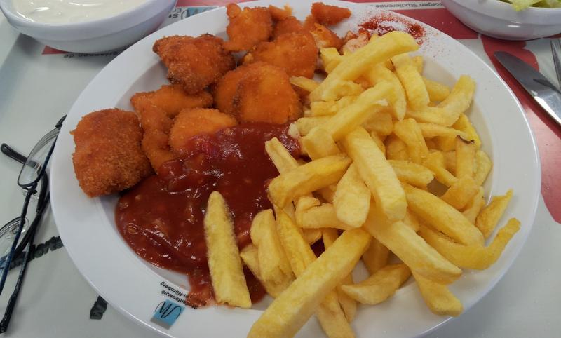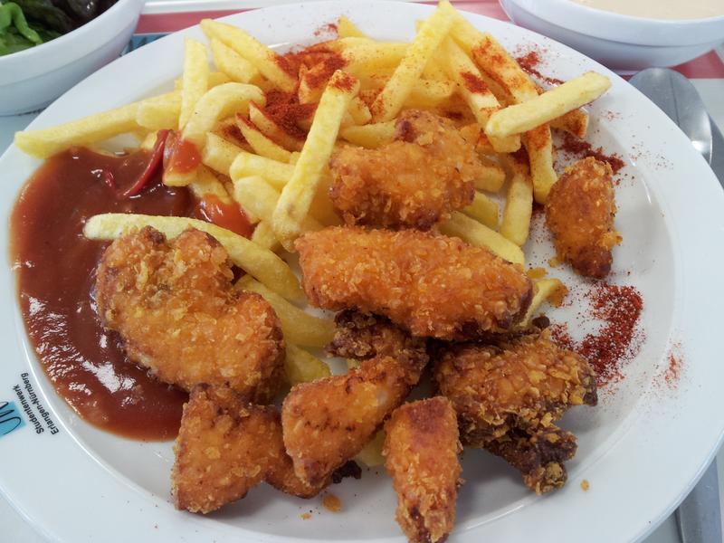 Mit Pommes schlagen die Mensanuggets die vom McDonalds um Weiten. Nicht schlecht