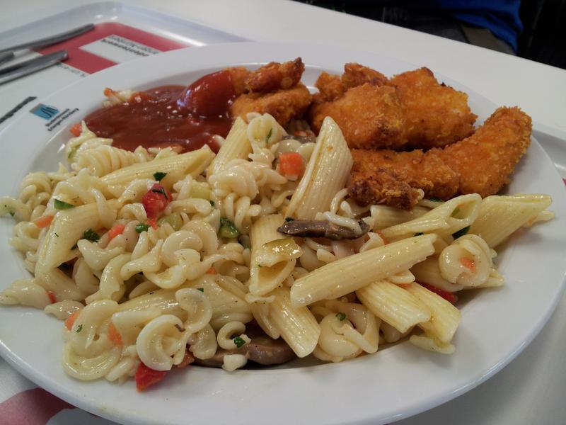 Letztes mal ganz gut, auch knusprig. Diesmal labbrige Panade und hartes Pressfleisch… Liebe Mensa, langsam reichts wieder mit schlechtem Essen!