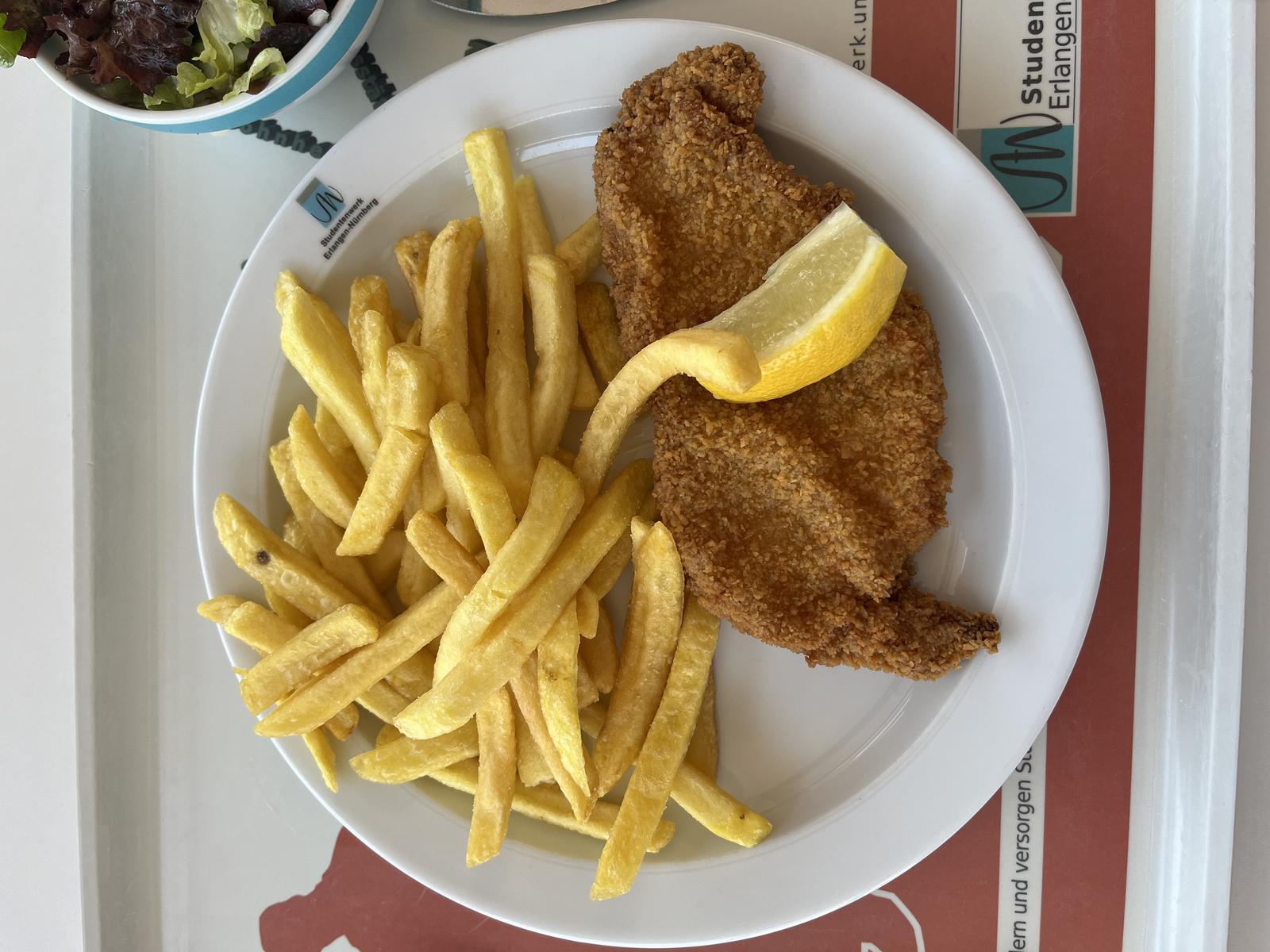 | Dies war mit riesigem Abstand das beste Schnitzel, dass ich jemals in meinen 10 Jahren Mensa gegessen habe. Nicht trocken, knusprige Pommes. Kurz: Ein Gedicht. Chapeau! liebe Suedmensa. | |