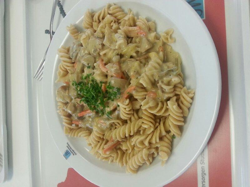 | ich fand es richtig lecker. Nudeln hätten etwas bissfester sein können, war aber auch erst um 13:30 Uhr essen. Soße enthielt neben den Pilzen auch Gemüsestreifen. Hat sehr gut geschmeckt. | |