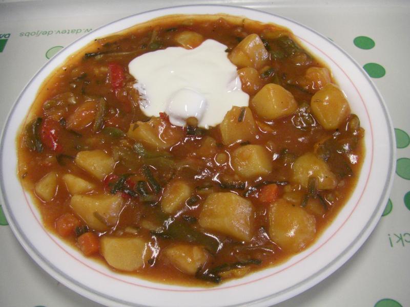 | Nicht unleckere Tomaten-Pampe mit Kartoffeln. Durchaus genießbar. | |