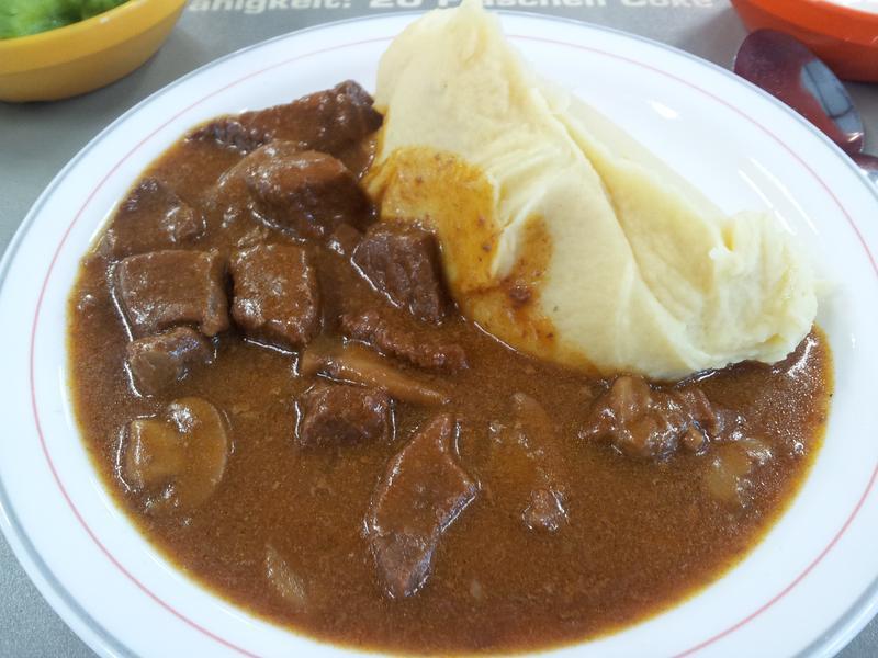 | Nudeln oder Kartoffelpüree zur Auswahl als Beilage. War für Mensa-Verhältnisse durchaus genießbar! Portionsgröße war auch iO. Vom Bier habe ich nichts geschmeckt.... | |