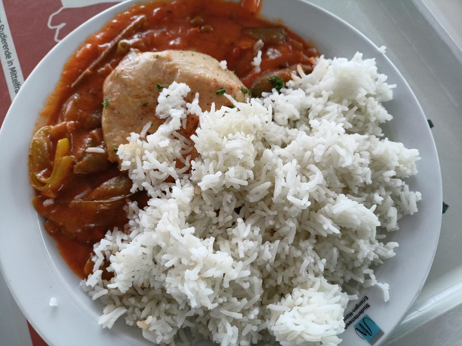 | Heute wieder sehr gut, schmeckt sehr frisch und nicht so schwer wie die Käsespätzle die es heute als Tipp des Tages gab. Kann ich wirklich empfehlen, auch wenn ich wie immer nach etwas mehr Soße gefragt habe. | |