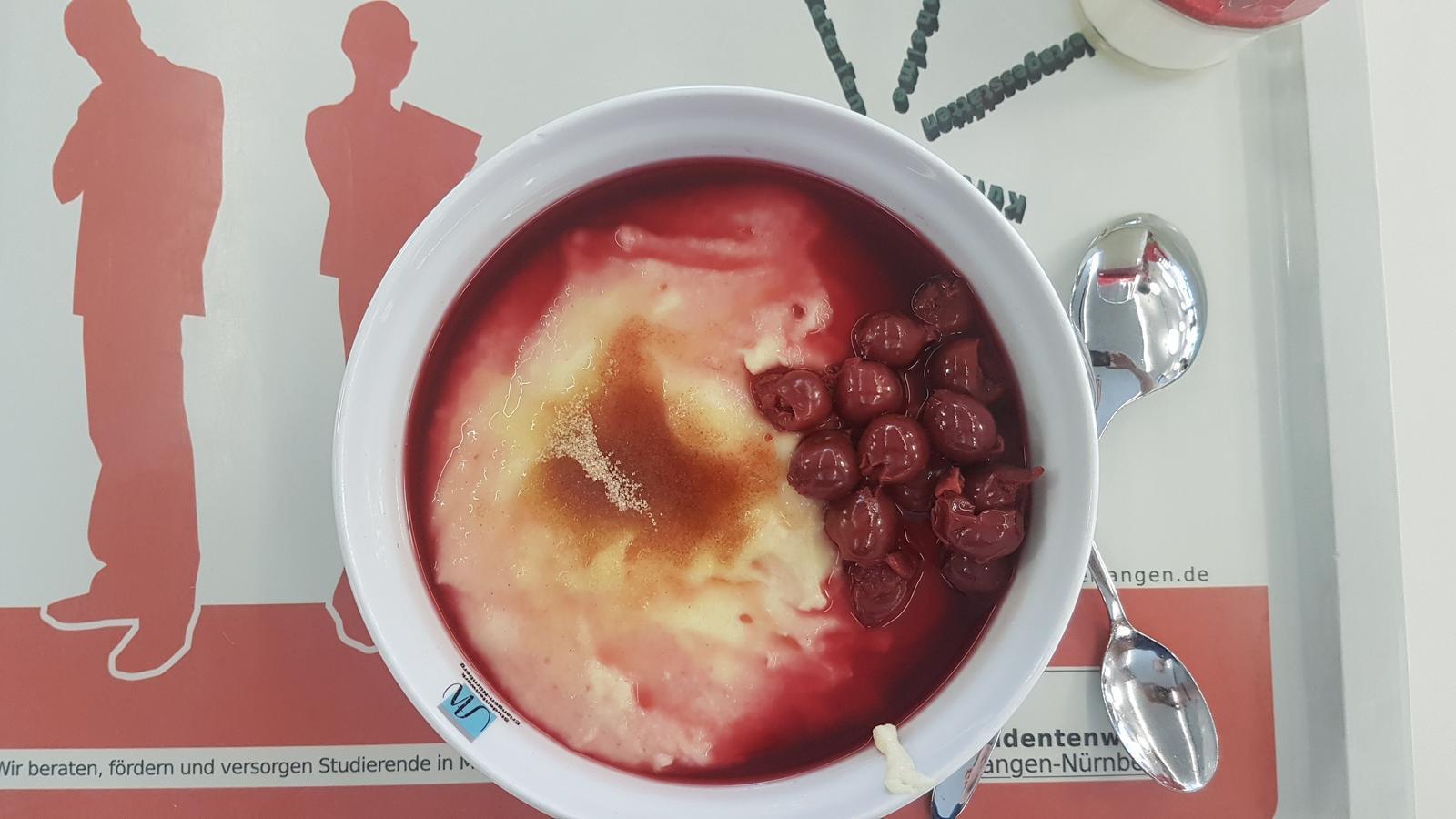 | omg, das Kirschkompott war total salzig! Anscheinend hat es jemand zuckern wollen und dabei zum Salz gegriffen. Naja, kann passieren. Der Griessbrei war dadurch leider nicht mehr essbar | |