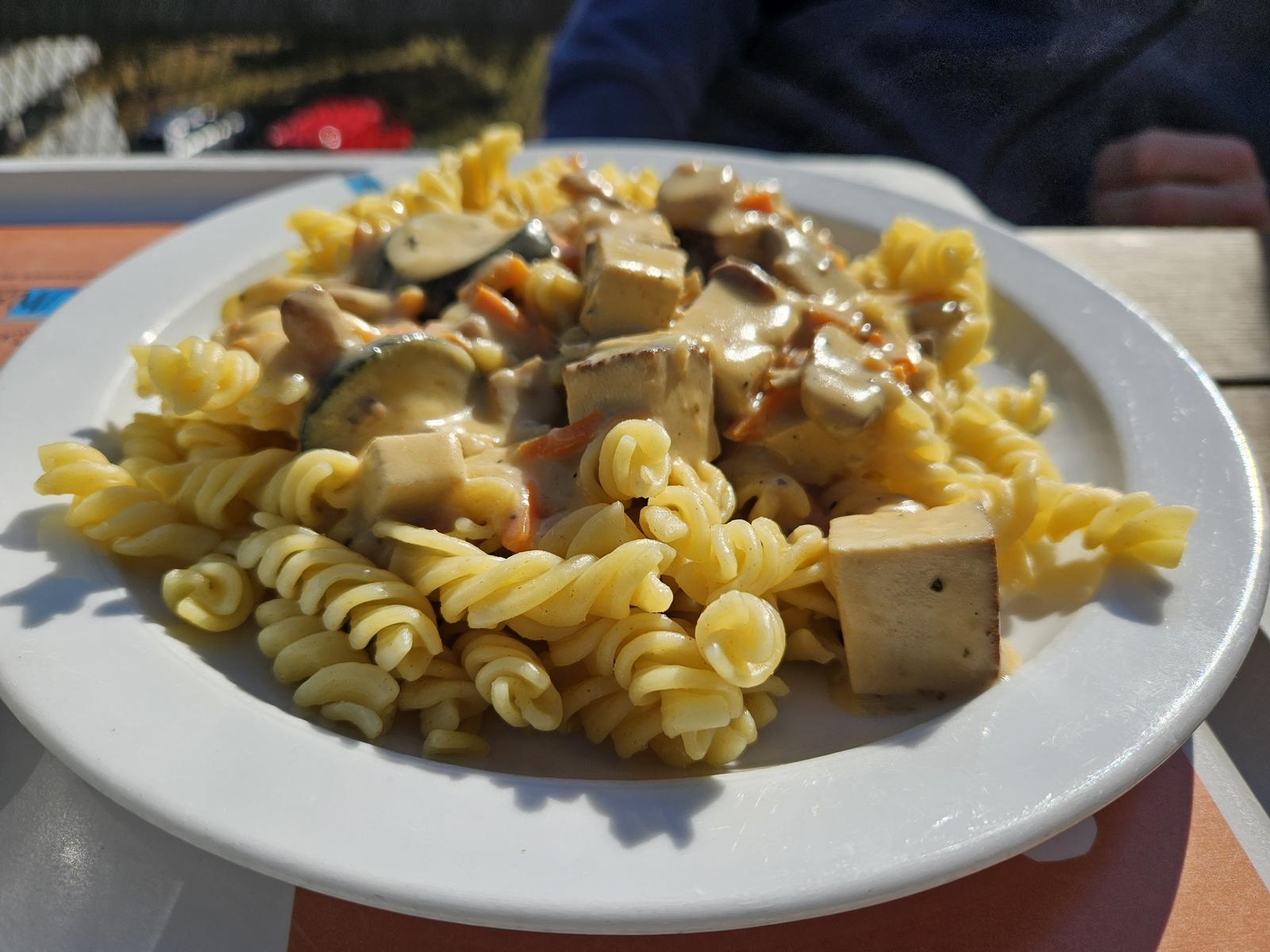 | Nudeln leicht überkocht. Der geschmackslose Tofu wird vom Pilzgeschmack ausgeglichen. Generell sind die Pilze das Highlight. Solide, aber die Nudeln gehen auf jeden Fall besser. | |