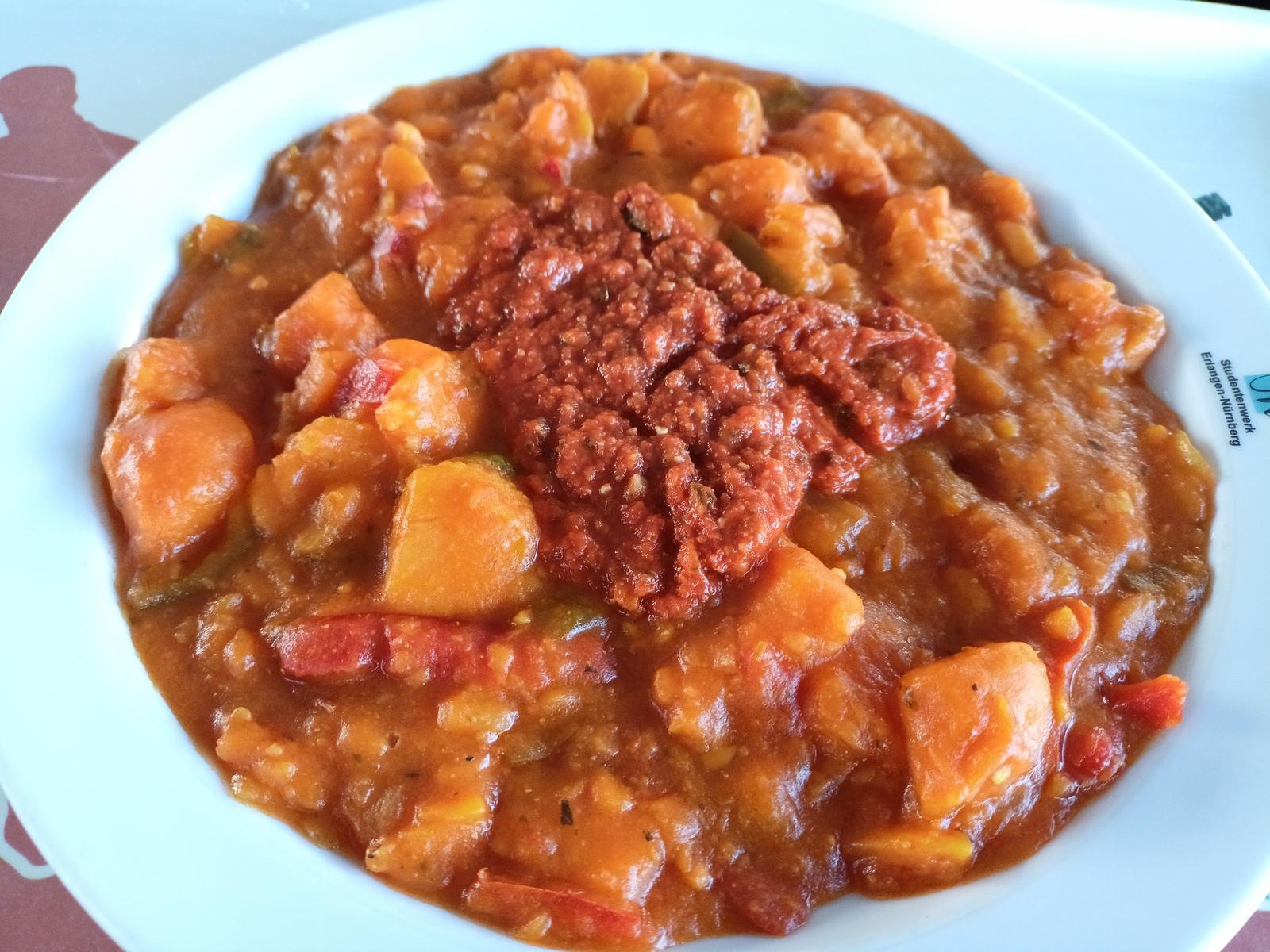 Schmeckt deutlich besser als es aussieht. Mein Tip: Noch ordentlich Pfeffer und v.a. Chillipulver dran hauen und man hat ein wirklich schmackhaftes Mensaessen. Menge ist leider ein bisschen zu wenig um nur davon wirklich satt zu werden.
