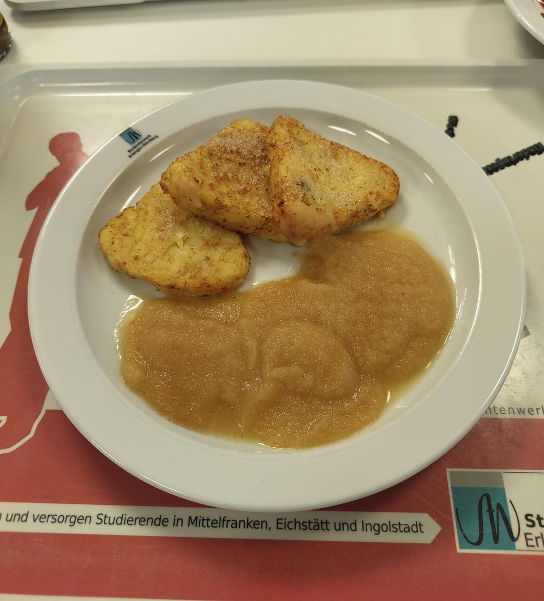 | Die Röstis waren bei mir nicht gefüllt und das Gemüse auch durchaus lecker. Imho echt essbar, ich würde sagen gesunder Mensa-Durchschnitt. | |