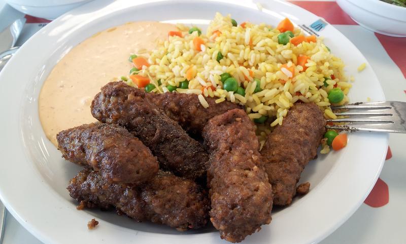 | Das Cevapcici und die Soße sind Top, aber dieser Reis..... sogar ich als Materialwissenschaftler bin bei der Beschreibung dieser schrecklichen Konsistenz maßlos überfordert | |