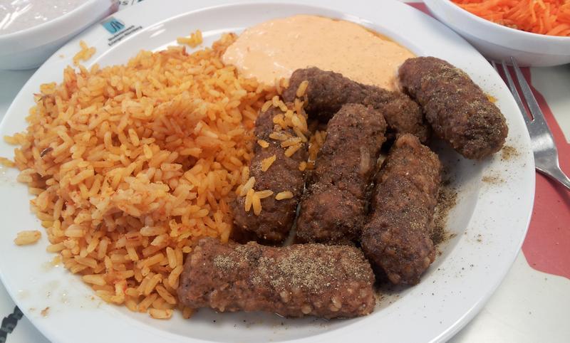 | Das Cevapcici und die Soße sind Top, aber dieser Reis..... sogar ich als Materialwissenschaftler bin bei der Beschreibung dieser schrecklichen Konsistenz maßlos überfordert | |