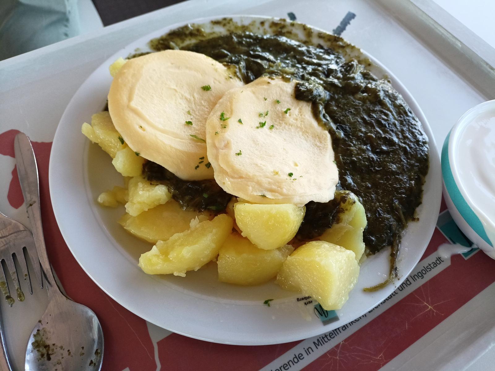 | Eipatty war OK, nur wo es herkommt möchte man lieber nicht wissen; Spinat heute sogar mal ne annehmbare Portion; Kartoffeln hingegen ziemlich trocken. | |