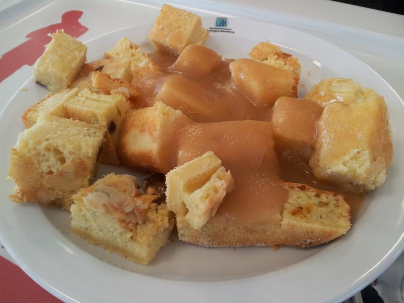 | Geschmacklich top. Zimt und Zucker kann man sich auch noch nach Belieben drüber streuen. Ein bisschen mehr Apfelmus wäre noch wünschenswert gewesen,aber gut alles deutlich besser als bei Aramark | |