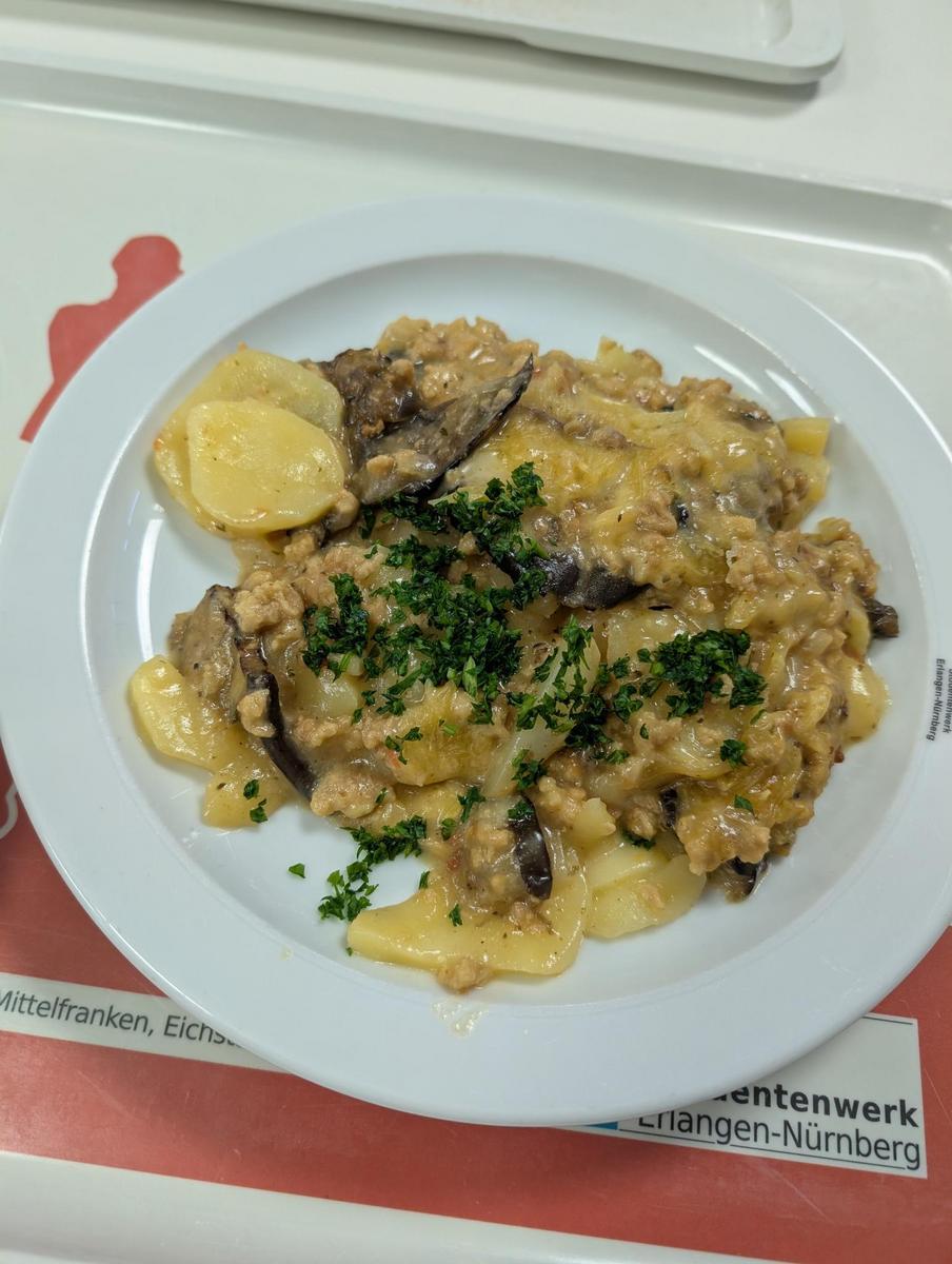 | War tatsächlich essbar. Heute mit etwas, was von weitem so tat, als wären es Kartoffeln. Leider musste ich doch feststellen, dass es tatsächlich die angekündigten Klöße waren. Sehr gummiartige Konsistenz und nicht wirklich schmackhaft. Das Gulasch war aber echt richtig lecker, vor allem die Paprika darin. 8/10 would eat again | |