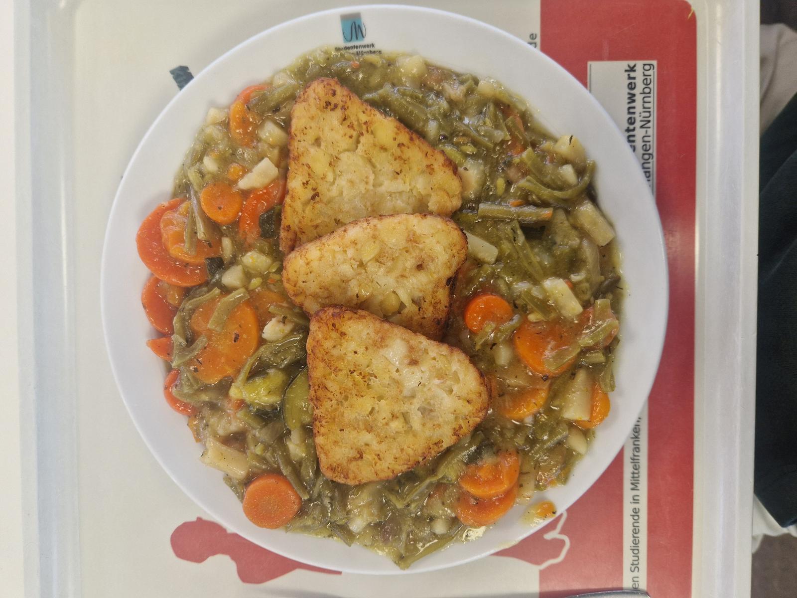 | Bulgur war natürlich äußerst weich, und heute teilweise auch etwas sehr scharf. Die vegetarischen Nuggets waren sehr lecker, die Panade aber nicht knusprig. | |
