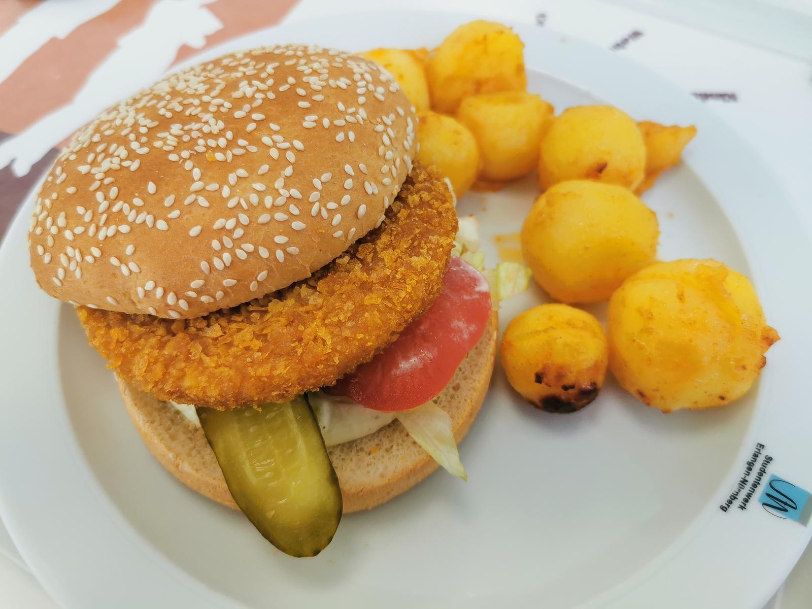 | Für einen Mensa-Burger echt passabel. Patty etwas trocken, da gibt es bessere, aber ansonsten mal eine positive Überraschung in dem sonst recht mauen veganen Speiseplan. | |
