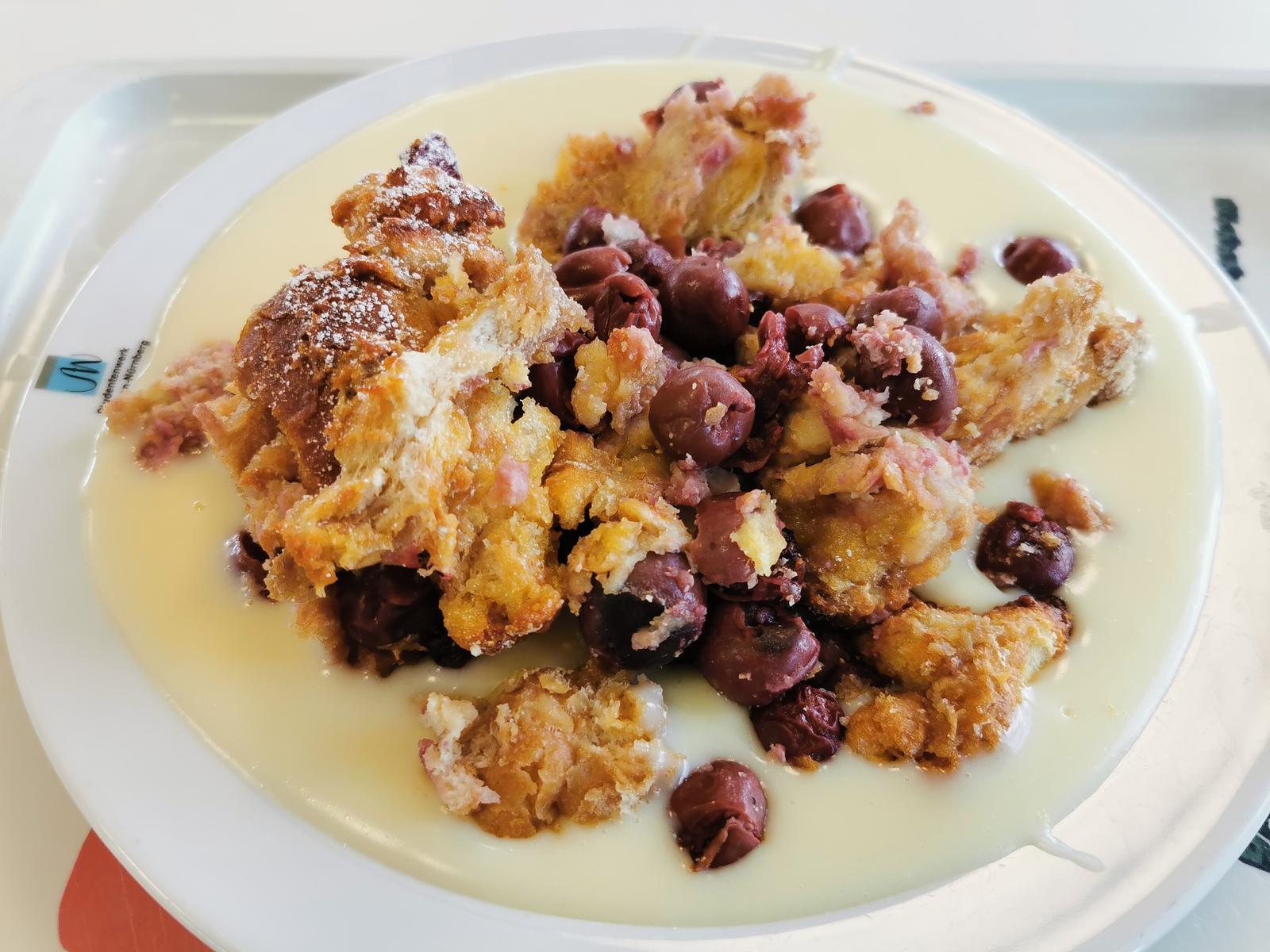 | Zum Glück war die Soße nicht so extrem süß wie beim letzten Mal. Gut, dass da auf die Kritik eingegangen wurde. Auch überraschend saftig und mit vielen Kirschen. Da es eines der wenigen warmen Süßspeisen ist, die nicht einfach Fertigware sind gibts 4/5 Sternen. | |