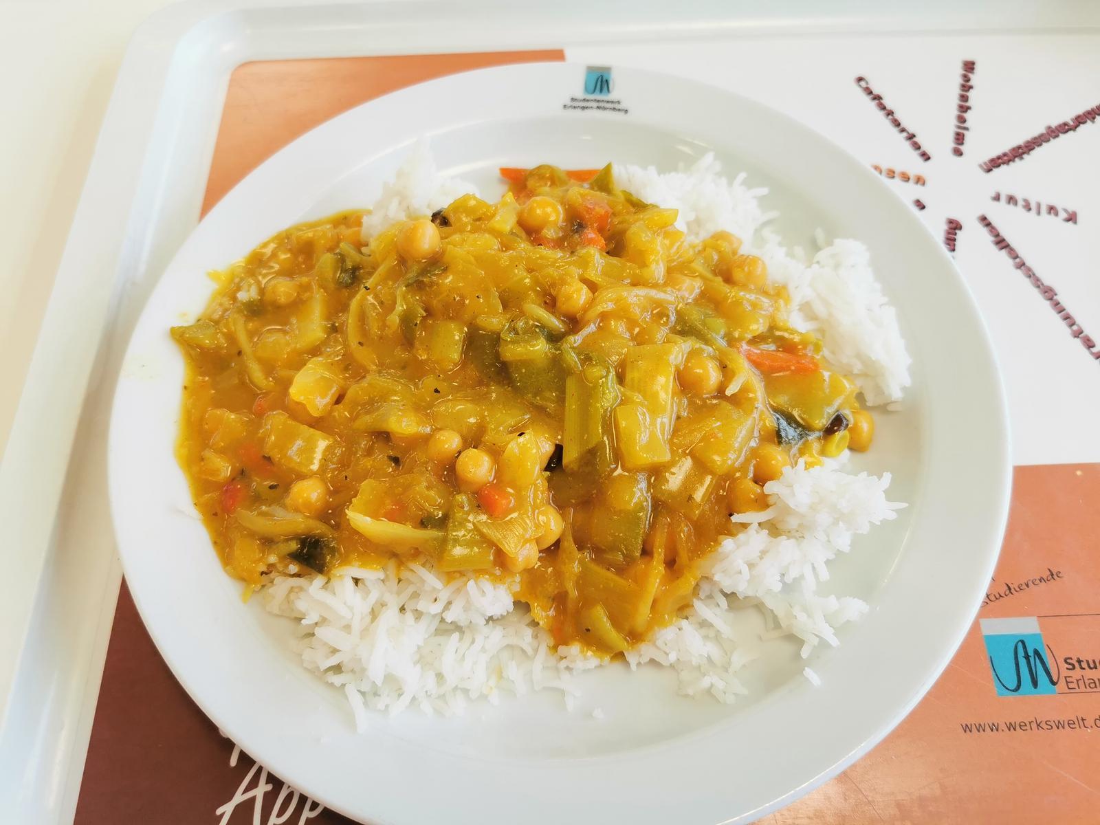 | Die Portionsgröße war ausreichend, die Kichererbsen hatten die perfekte Konsistenz und der insgesamte Geschmack war auch gut. Kurz gesagt: Leckeres veganes Mensaessen. | |